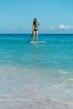 The Vortex stand-up paddle board paddle is light and offers durability and performance. This SUP paddle was designed for both novice and advanced paddlers. The 2-piece aluminum shaft's pin locking mechanism allows for rapid height adjustments. The T-grip handle offers maximum control for greater efficiency, and the blade shape is designed to prevent fatigue on longer trips. The polypropylene-reinforced fiberglass blade creates a stiffer blade, thus maximizing each stroke. The warm sunshine and gentle waves await!